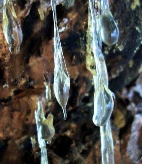 Tree resins should not be confused with “sap” even though they are both powerful substances. Resin is the thick sticky substance that the tree projects trough a wound, serving as a band-aid and antibiotic over the wound. Resin might be considered the more physical manifestation of phytoncides which are mostly considered to be airborne in nature.